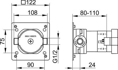 Встраиваемая часть Keuco 59541000070 IXMO функциональная для запорного вентиля DN 15, черный/серый