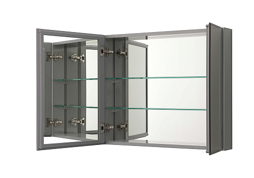 Алюминиевый зеркальный шкаф без подсветки; Две зеркальные дверцы шириной 50,9 и 25,5 см; Две стеклянные полки 6 мм; Цельнонакладная зеркальная дверь со скошенными краями; Зеркальный салон; Петля DTC на 110 градусов. Возможна установка с левым или правым поворотом; Конструкция дверцы позволяет устанавливать ее так, чтобы она открывалась в нужную вам сторону; С механизмом доводчика, обеспечивающим плавное закрывание; Мебель поставляется в собранном виде; Дополнительное оснащение зеркала: подвесы; Монтаж подвесной; Гарантия: 1 год