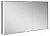 Один глухой зеркальный элемент в середине, две поворотные зеркальные дверцы из двойного хрустального стекла, корпус из анодированного серебристого алюминия, задняя стенка из покрытого с тыльной стороны белым лаком стекла. Управление: сенсорная передняя панель, можно включать и от общего выключателя в помещении. Подсветка: светодиоды 2x12,5 Вт (срок службы > 30.000 часов горения.), тон подсветки 3000 Кельвин (тепло-белая), бесступенчатая реостатная регулировка, лампы не требуют замены.