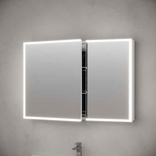 Зеркальный шкаф для ванной комнаты SANCOS Evoke1000x700х136 мм, корпус из алюминия, LED подсветка фронтальная, розетка 220V, разъемы USB и Type-C, бесконтактное управление, арт. SC80100