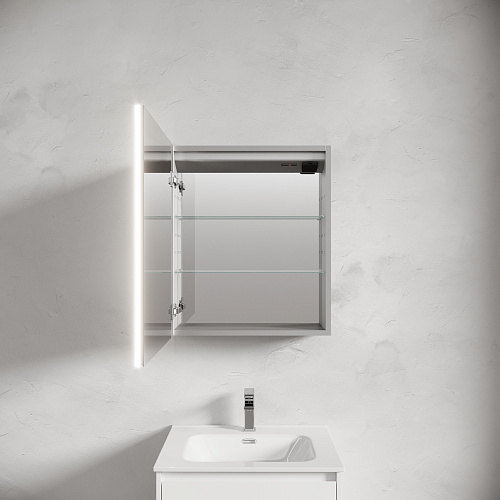 Зеркальный шкаф для ванной комнаты SANCOS Evoke 600x700х136 мм, корпус из алюминия, LED подсветка фронтальная, розетка 220V, разъемы USB и Type-C, бесконтактное управление, арт. SC8060