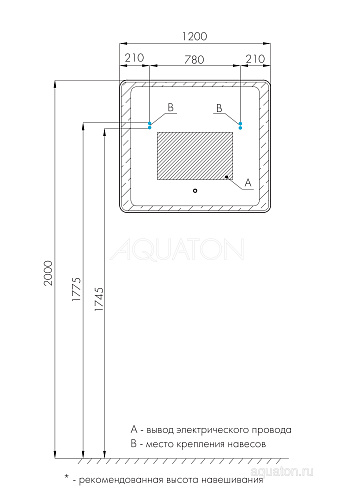 Оснащение LED-подсветка по периметру, touch-выключатель с диммером, система Anti-Steam.