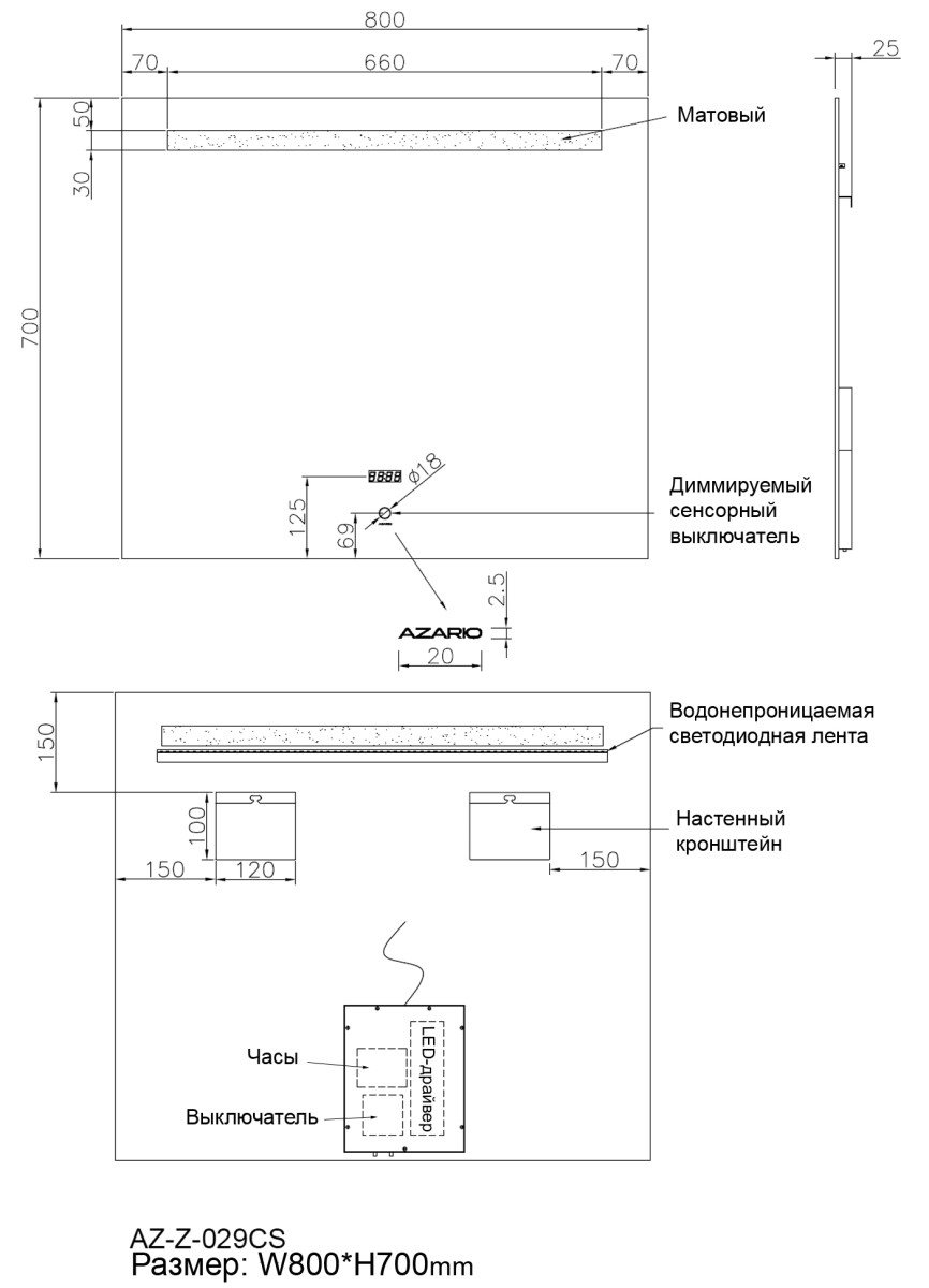 Зеркало Azario сантехника VIVA AZ-Z-029CS купить по доступной цене