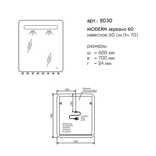 Зеркало Caprigo 2030 Modern 60х70 см с подсветкой