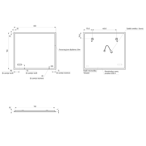 Оснащение зеркало с подсветкой, комплект креплений, инструкция, гарантийный талон