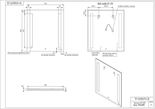 Оснащение зеркало с подсветкой, комплект креплений, инструкция, гарантийный талон