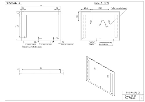 Оснащение зеркало с подсветкой, комплект креплений, инструкция, гарантийный талон