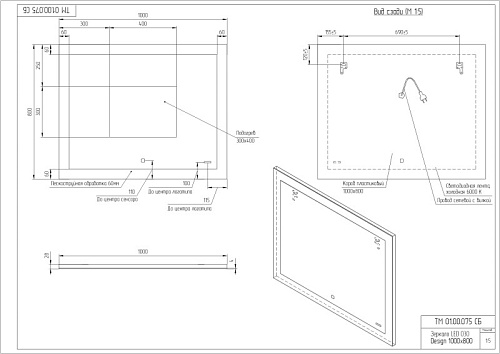 Оснащение зеркало с подсветкой, комплект креплений, инструкция, гарантийный талон