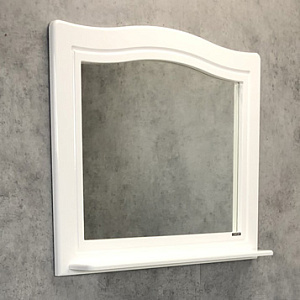 Зеркало в неоклассическом стиле из высококачественного полотна с амальгамой на основе серебра. Полка для размещения принадлежностей для умывания.