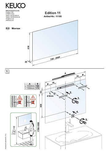 Зеркало Keuco 11195001500 Edition 11 хрустальное 61х70 см купить по доступной цене