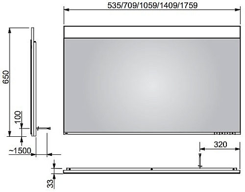 Бесступенчатая настройка тона подсветки от 2700 Кельвин (теплая белая) до 6500 Кельвин (дневной свет), обрамление из алюминия. Управление: сенсорные клавиши на корпусе зеркала, встроенная функция отдельного включения от общего выключателя в помещении. Подсветка: светодиоды (срок службы > 30.000 часов горения), бесступенчатый реостат/диммер.