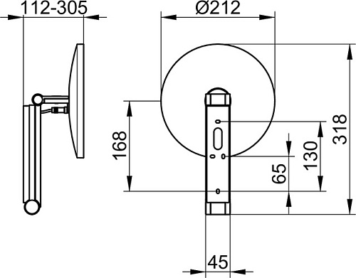 Один цвет подсветки 6500 Кельвин (дневной свет), управления через выключатель в помещении, электрокабель интегрирован в поворотный кронштейн, настенная модель на кронштейне с шарниром, регулируется в трех плоскостях, одностороннее зеркало, вогнутое, коэффициент увеличения x 5. Управление: выключатель в помещении (не поставляется с товаром). Электроснабжение: подключение к сети через подрозетник, 12 В встраиваемый сетевой блок питания. Напряжение на входе: 220-240 В. Потребление в режиме ожидания: 0 Вт. Подсветка: светодиод 4,5 Вт (срок работы > 50.000 часов).