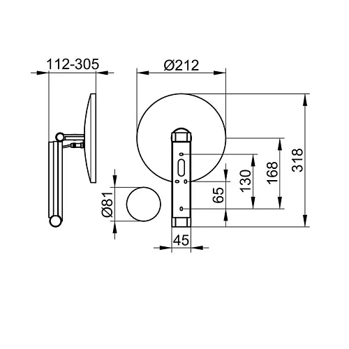 5-уровневое переключение цвета подсветки от 2700 Кельвин (теплый белый) до 6500 Кельвин (дневной свет), стеклянная панель управления, электрокабель интегрирован в поворотный кронштейн, настенная модель на кронштейне с шарниром, регулируется в трех плоскостях, одностороннее зеркало, вогнутое, коэффициент увеличения x 5. Управление: стеклянная сенсорная панель и светодиодный индикатор. Электроснабжение: подключение к сети через подрозетник, 12 В встраиваемый сетевой блок питания. Напряжение на входе: 220-240 В. Потребление в режиме ожидания: < 0,5 Вт. Подсветка: светодиод 4,5 Вт (срок работы > 50.000 часов).