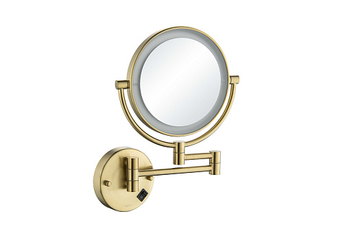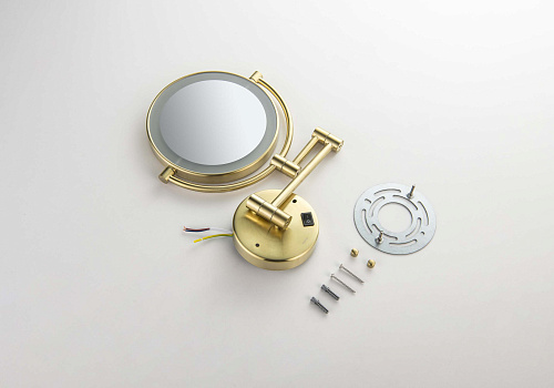 Материал - Латунь Подсветка, Белый свет первая сторона - увеличение 5х вторая сторона - обычное зеркало Упаковано в белую коробку Размеры: 257*257*314мм