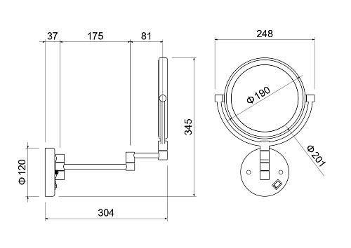 Материал - Латунь Подсветка, Белый свет первая сторона - увеличение 5х вторая сторона - обычное зеркало Упаковано в белую коробку Размеры: 257*257*314мм
