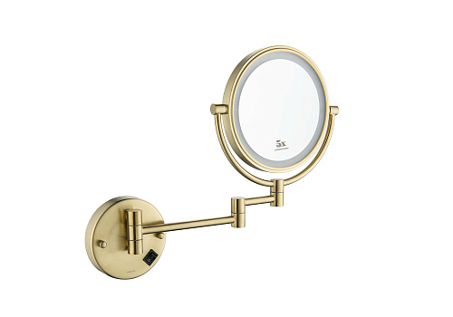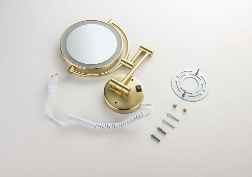Материал - Латунь LED подсветка, Белый свет 6400К первая сторона - увеличение 5х вторая сторона - обычное зеркало Белая вилка и провод Упаковано в белую коробку Размеры: 257X257х314мм