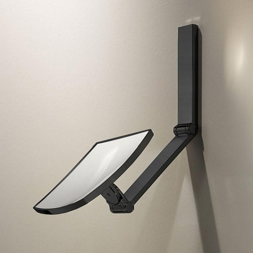 Без подсветки, настенная модель на кронштейне с шарниром, регулируется в трех плоскостях. Одностороннее зеркало, вогнутое, фактор увеличения x 5.