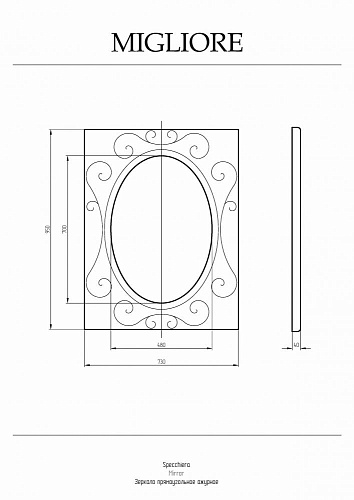 Зеркало Migliore 30494 прямоугольное ажурное 95х73х4 см, золото