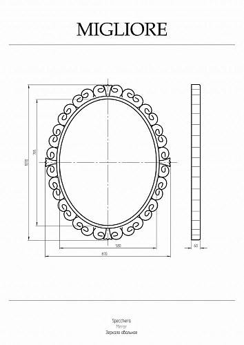 Зеркало Migliore 31344 овальное 107х87х6 см, золото