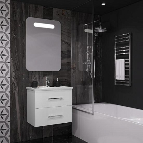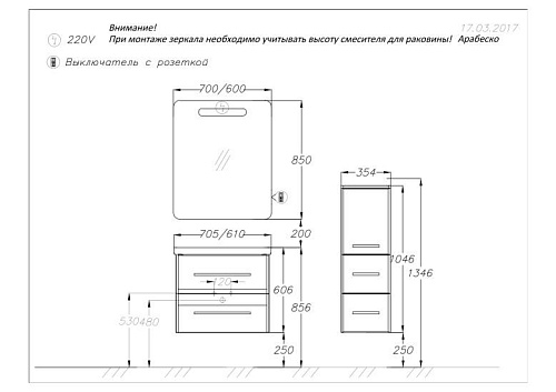 Коллекция подвесной мебели АРАБЕСКО строгая и лаконичная. Подвесная тумба прямоугольной формы с изящной ручкой, двумя выдвижными ящиками с системой «плавного закрывания», глубокой керамической раковиной и зеркалом. В коллекцию также входит подвесной пенал с двумя выдвижными ящиками и дверцей. Мебель из коллекции АРАБЕСКО покрыта влагостойкой эмалью с глянцевым лаком.