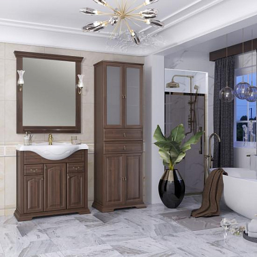 Коллекция РИСПЕКТО символизирует лучше традиции неоклассики в сочетании с необыкновенной функциональностью и простотой дизайна. Успех и уникальность коллекции формируется несколькими вариантами отделок, а также размерным рядом моделей и глубокой керамической раковиной. Завершенность стилю коллекции РИСПЕКТО придают сложные филенчатые фасады мебели. Несколько вариантов пеналов — узкий, стандартный (с бельевой корзиной) и двухстворчатый — удачно завершают комплектацию коллекции. Мебель оснащена механизмами плавного закрывания Hettich (Германия).