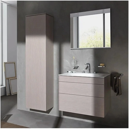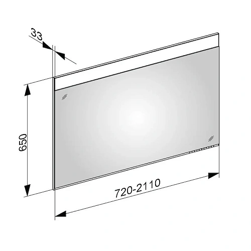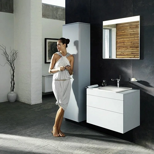 С подогревом, бесступенчатая настройка тона подсветки от 2700 Кельвин (теплая белая) до 6500 Кельвин (дневной свет), обрамление из алюминия. Управление: сенсорные клавиши на корпусе зеркала, встроенная функция отдельного включения от общего выключателя в помещении. Подогрев зеркала: оптическая индикация фазы нагревания, автоматическое отключение через 20 мин. Подсветка: светодиоды (срок службы > 30.000 часов горения), бесступенчатый реостат/диммер.