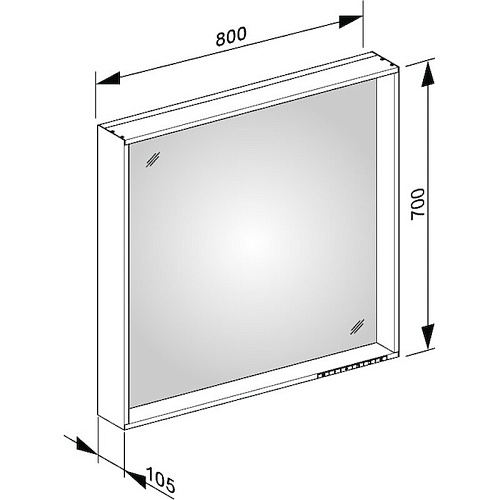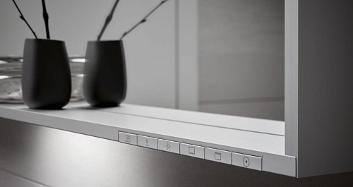 С подогревом зеркала, плавная регулировка цвета подсветки от 2700 Кельвин (теплый белый) до 6500 Кельвин (яркий дневной свет), алюминиевая рама по периметру зеркала, алюминий серебристый анодированный. Управление: сенсорная панель управления, на выбор – с возможностью подключения к общему выключателю. Подогрев зеркала: оптическая индикация фазы нагревания, автоматическое отключение через 20 мин. Подсветка: светодиоды (срок службы более 30 000 часов), основное освещение (верхнее и освещение стен) и освещение умывальника с отдельной регулировкой интенсивности и включением/выключением.