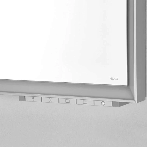 Бесступенчатая настройка тона подсветки от 2700 Кельвин (теплая белая) до 6500 Кельвин (дневной свет), обрамление из алюминия. Управление: сенсорные клавиши на корпусе зеркала, встроенная функция отдельного включения от общего выключателя в помещении. Подсветка: светодиоды (срок службы > 30.000 часов горения), бесступенчатый реостат/диммер.