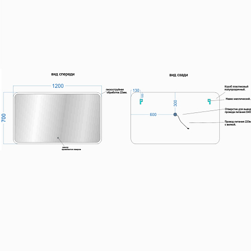 Оснащение LED подсветка, сенсор вкл/ выкл