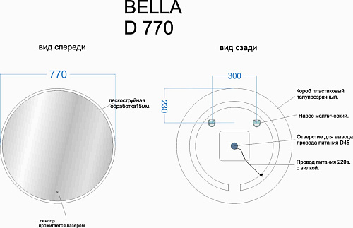 Зеркало для ванной комнаты SANCOS Bella 770, LED подсветка; диммируемый сенсорный выключатель, пластиковый светопропускающий короб, арт. BE770