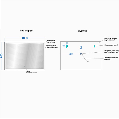 Оснащение LED подсветка, сенсор вкл/ выкл