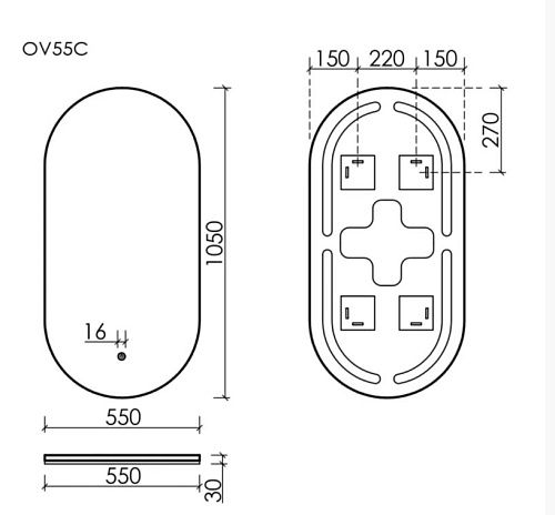 Зеркало для ванной комнаты SANCOS Oval, фоновая подсветка 550х1050 с сенсорным управлением на прикосновение, арт. OV55C