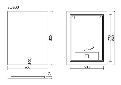 Зеркало для ванной комнаты SANCOS SQUARE 600х800 LED подсветка, выключатель Touch сенсор диммируемый, арт. SQ600