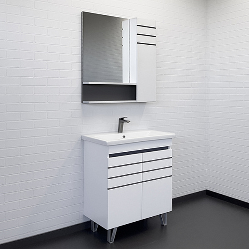 Зеркальный шкаф Comforty 00-00015235 Нарва 70х80 см, белый матовый/графит